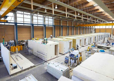 • Eficiencia y rapidez: Gracias a la estandarización y fabricación en serie de componentes y módulos, la producción es más eficiente y los tiempos de construcción se reducen considerablemente. La fabricación en entornos controlados minimiza los retrasos por condiciones climáticas.