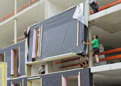 - Una vez fraguado y curado el sándwich, se ejecutan los trasdosados normalmente en posición vertical.
